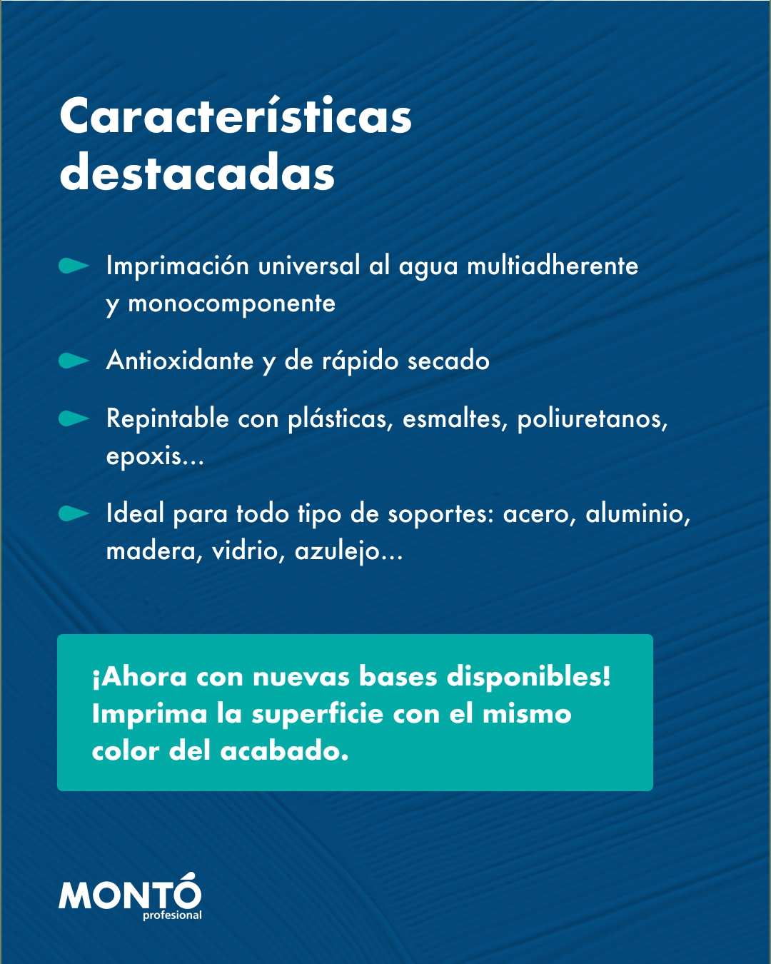 - Montoprimer Total Acqua es la imprimación universal al agua más versátil, con adherencia en prácticamente todos los soportes