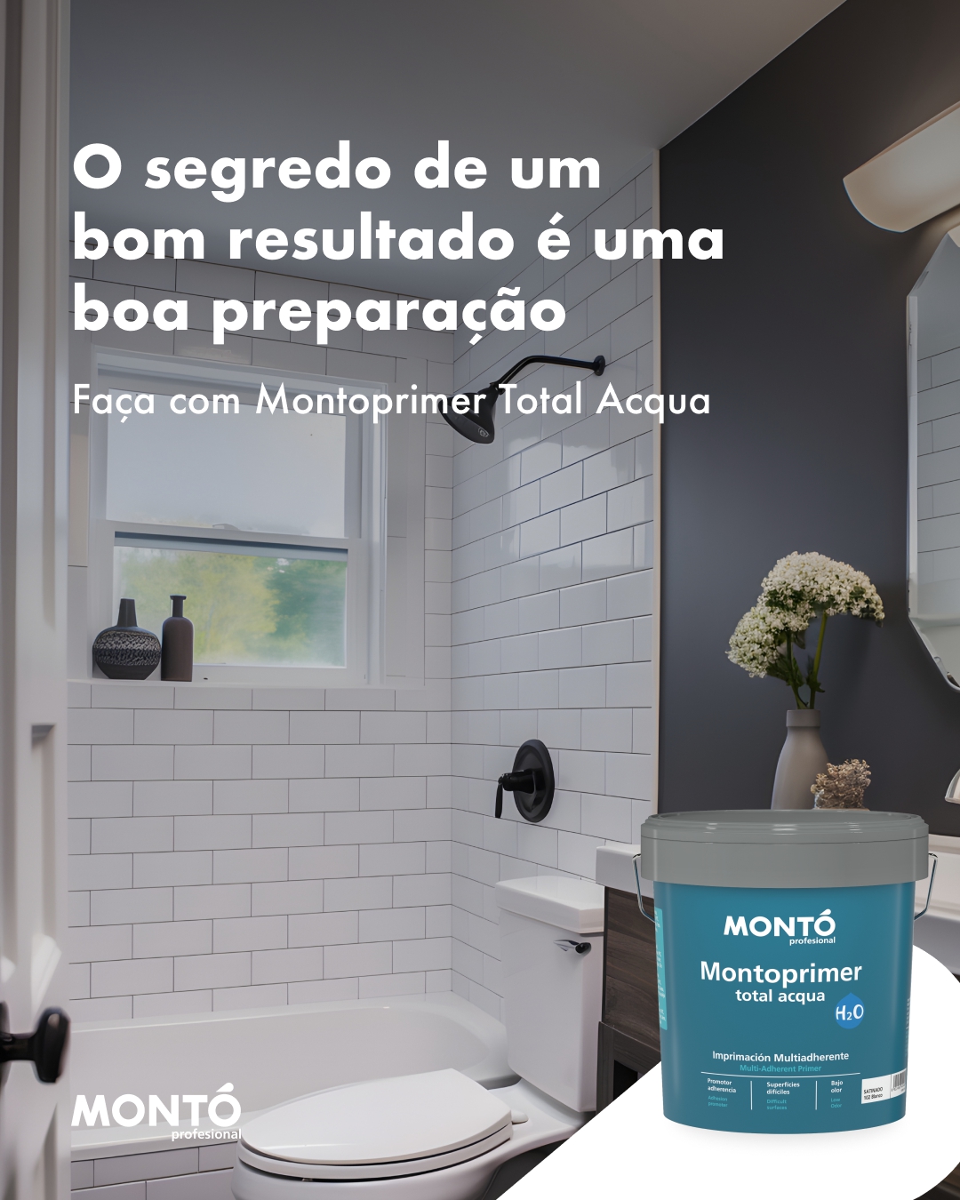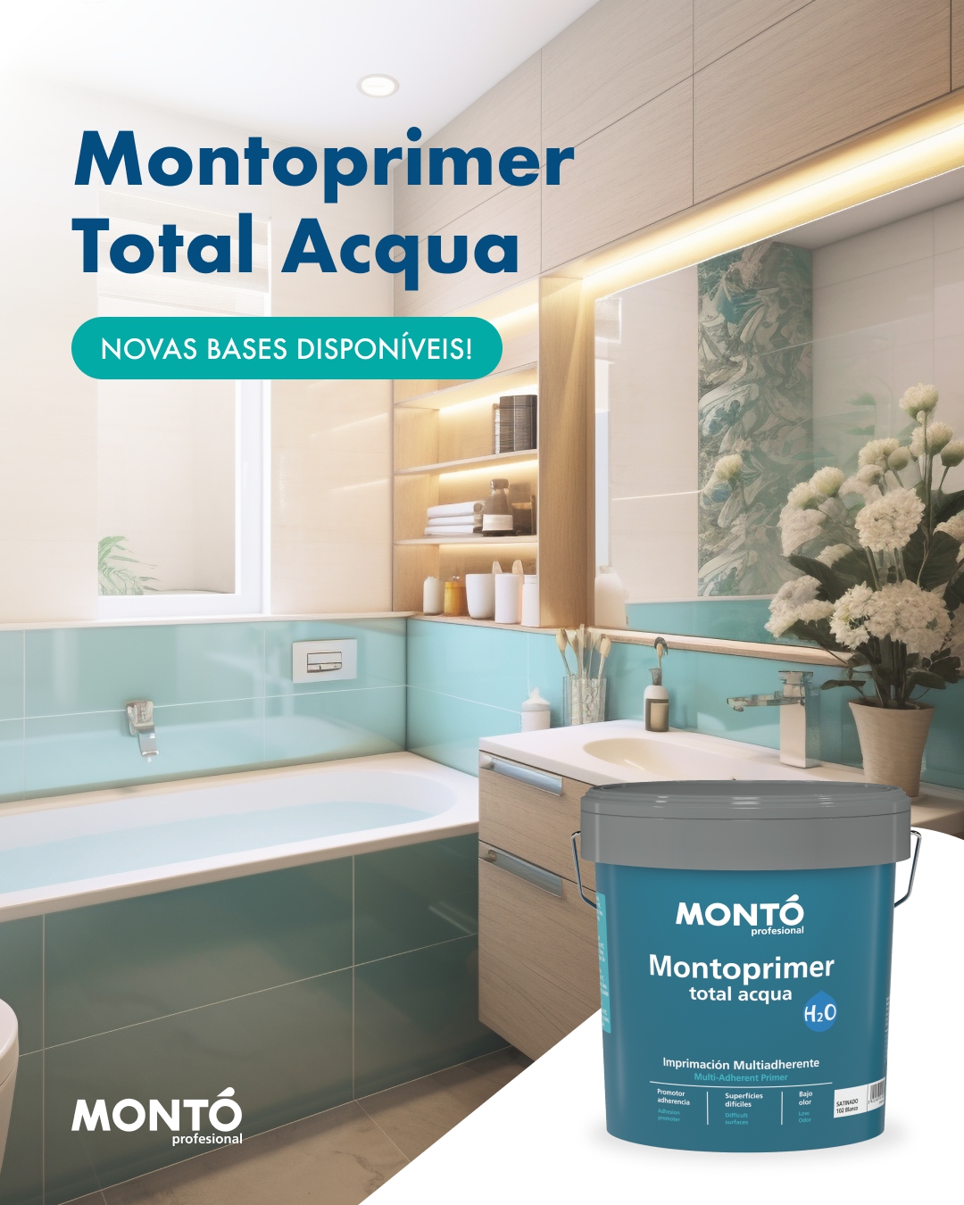 - Montoprimer Total Acqua é o primário universal de base aquosa mais versátil, com aderência em praticamente todas as superfícies.